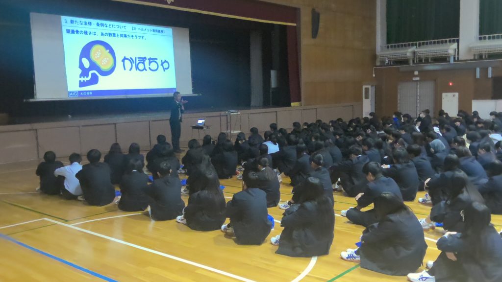 12月8日(月)AIG損保の大木元さまより、道路交通法改正に伴う自転車運転の注意点について講話をいただきました。