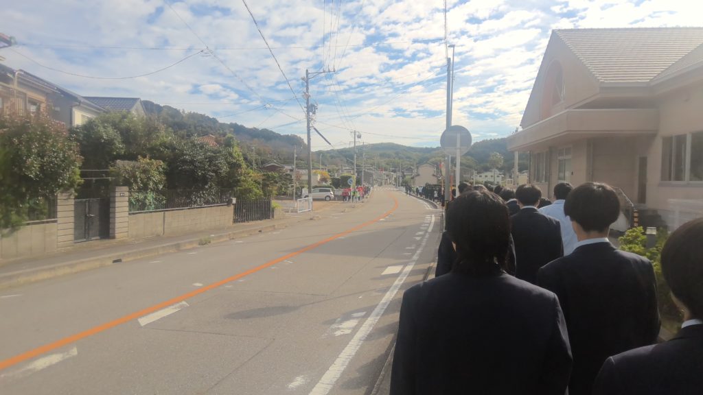 11月4日(火)、三校合同避難訓練を実施いたしました。今年度は普通科も含めた学校全体での訓練となりましたが、どの生徒も真剣に取り組んでいる様子でした。一時避難場所の正法寺山古墳に目標時間よりも早い25分以内に全校生徒が到着することができました。