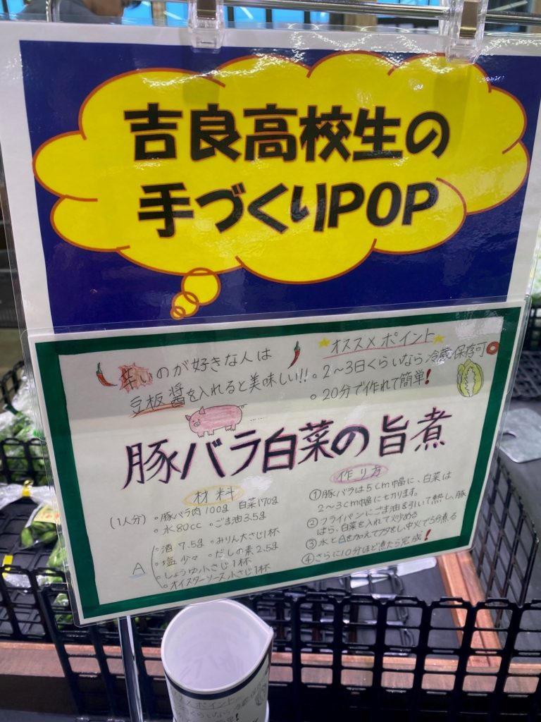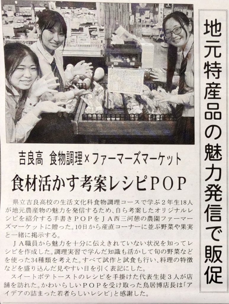 生活文化科食物調理コース2年生18名が地元農産物の魅力発信するため、自ら考案したレシピを紹介する手書きPOPを作成しました。