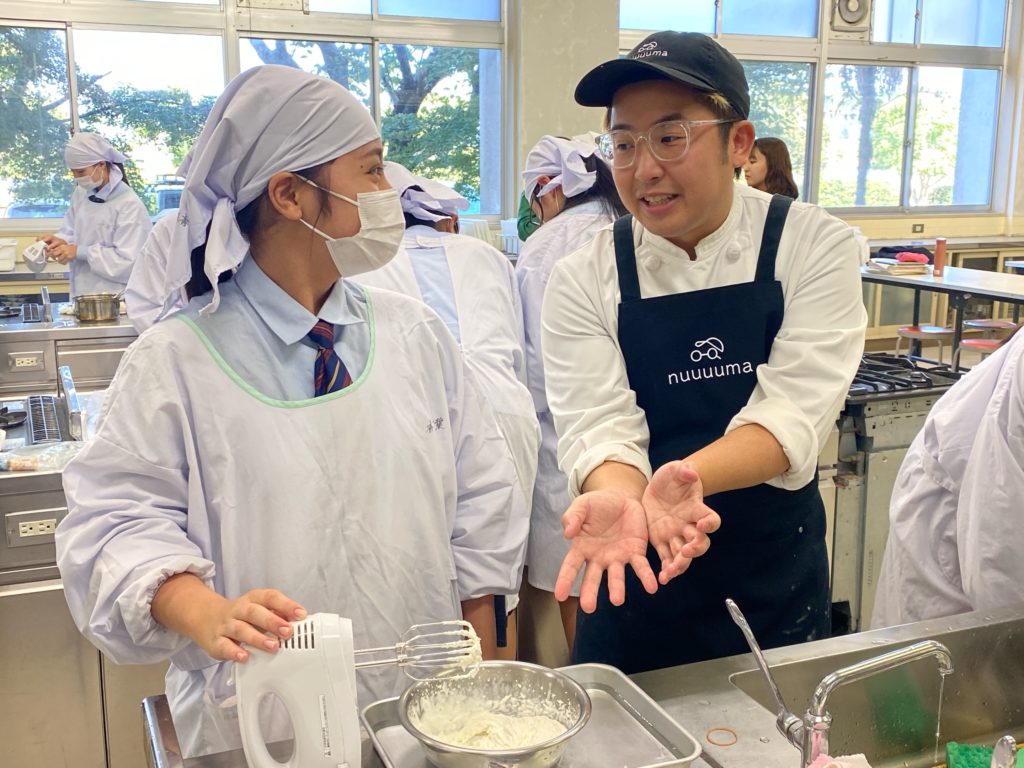 10月30日(木)には、食物調理コース2年生を対象に、外部講師としてnuuuumaの沼口先生をお迎えし、試作品へのアドバイスをいただきました。